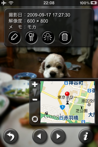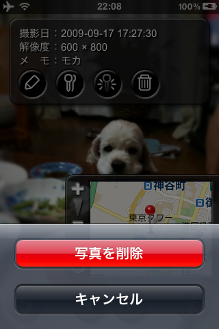 カメラロールに保存されたJpeg画像を表示/編集することが可能です。png画像やライブラリの画像には対応しませんので、ご注意ください。